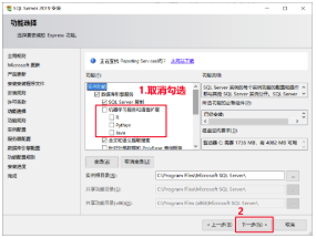 6)取消勾选【机器学习服务和语言扩展】,点击【下一步】
