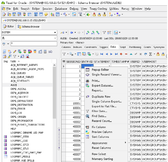 针对已过滤的数据,点击右键可以进行导出(Export Editor)、统计(Record Count)等;