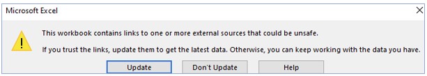 运行该文件后,重新启动 MS Excel,然后再次尝试打开该文件。如果出现提示,请再次使用“更新”按钮,这次应该可以正常工作。