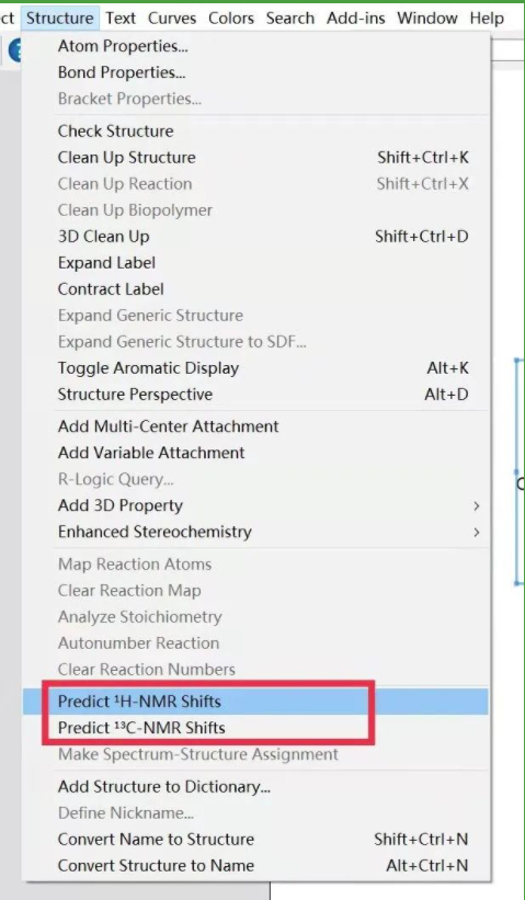 点击上图中红色框内的两个选项可分别预测化合物的氢谱和碳谱,如下图: